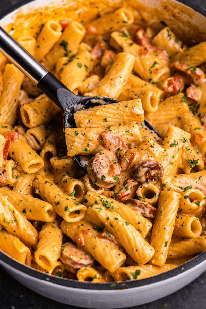 Note: Feel free to add a cooked protein (like chicken, sausage, or shrimp) once the pasta is cooked.