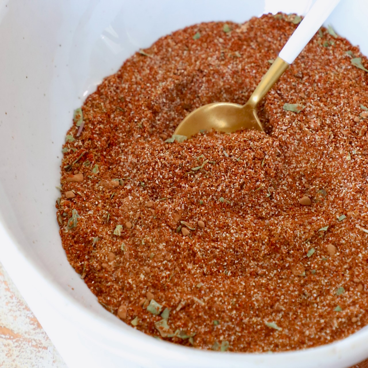 Ingredients: Chili powder, paprika, dried minced onion, cumin, garlic powder, brown sugar, salt.