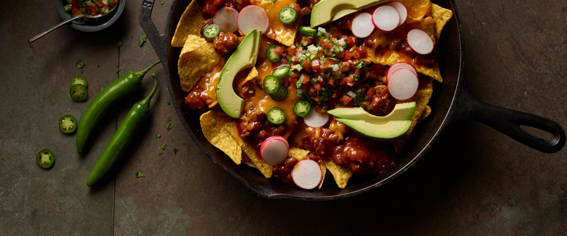 Hearty Chili Nachos: Use a thicker version of the chili as a topping for nachos, finished with jalapeños, avocado, and lime-infused sour cream.